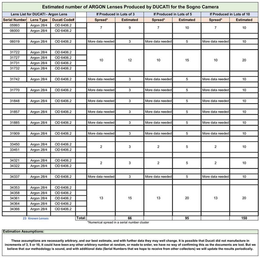 The following table is a list of known Argon Lenses with the Serial Number and possible number produced in our estimate. Please help us in our efforts to expand this list by sending us any lens serial number/s not in our list so that it will be as accurate as possible, thank you! Latest UPDATE: Oct-25.