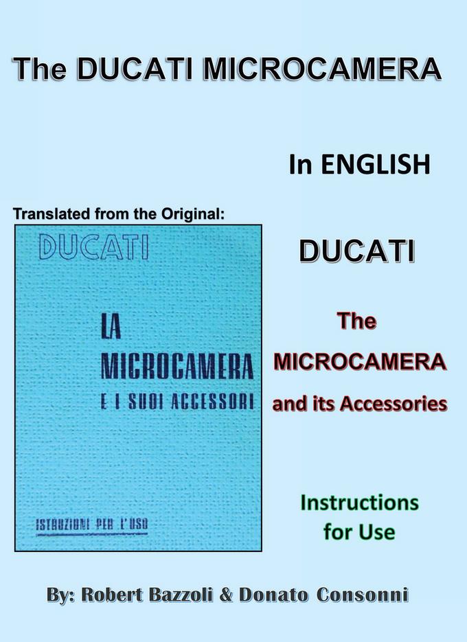 By R. Bazzoli: If you are a fan of the Ducati Camera system, but like me cannot speak or read Italian fluently, you have probably been frustrated not only by the lack of available accurate general information about the camera system and its accessories, but also the specifics of how it all should be used correctly. I already had the original Italian manuals for the Sogno & Simplex, and had purchased Italian PDF versions of the 'Normali', only to find that they were next to impossible to scan or OCR correctly for translation, and ended up with a jumble of barely recognizable text. That left manually typing the Italian text into a web translator and then trying to make sense of those results, which quite often end up nonsensical. On our website here we have already, with the help of Mr. Consonni, translated and uploaded what we think is the best English information available about the Ducati Microcamera System and History on the internet. All that was missing was the information, in English, on HOW TO USE IT all correctly...