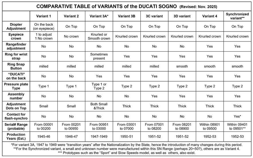 Subsequently, upon further research in the Sandro Vascon book on the Ducati microcameras, in which he focused on other small details of the Dream, he was able to further define the variations: