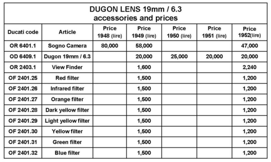 The Dugon lens was referred to in the Ducati documentation as a "Wide-angle lens suitable for architectural, landscape and interior designations" and appeared for the first time in the 1949 documentation.